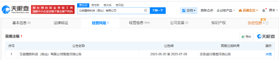 新浪科技讯 7月9日上午消息,天眼查经营风险信息显示,近日,立森精密科技(昆山)有限公司新增一则简易注销公告昆明配资公司,公告期为6月20日至7月9日。