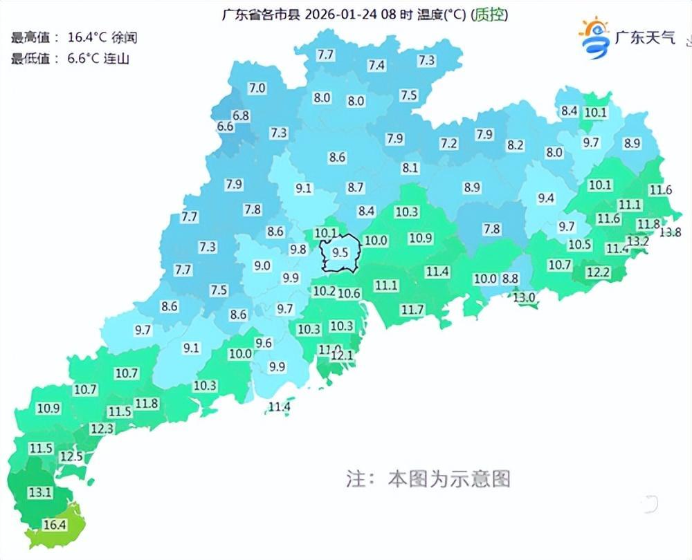 25日,珠江三角洲中东部、粤北和粤东市县多云,夜间转阴天,有小雨;其余市县多云间晴天,夜间转阴天,局部有零星小雨。早晚有轻雾或雾。最低气温:粤北市县7~10℃,雷州半岛市县14~18℃,其余市县10~13℃。
