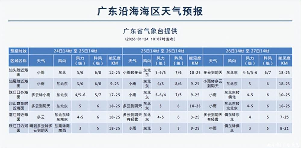 海上大风预报:25日,广东省中东部海面有东北到东风6级阵风7级。